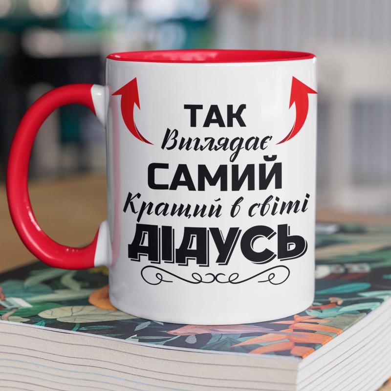 Чашка керамічна з принтом "так виглядає самий кращий в світі дідусь" 330 мл, біла з червон...