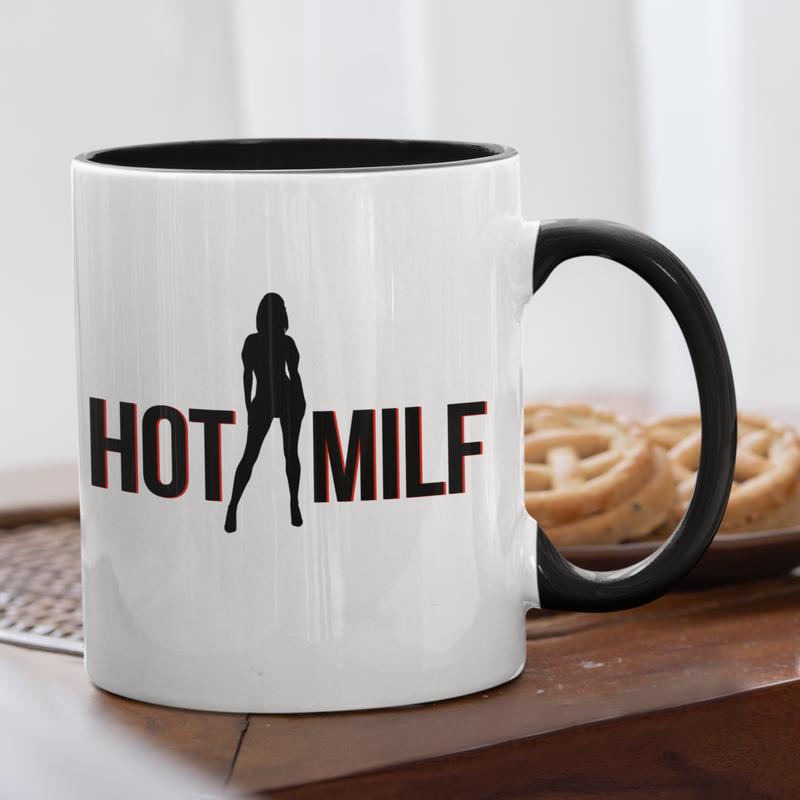Чашка керамічна з принтом "hot milf" 330 мл, біла з чорною ручкою