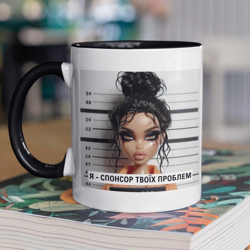 Чашка керамічна з принтом "я спонсор твоїх проблем" 330 мл, біла з чорною ручкою