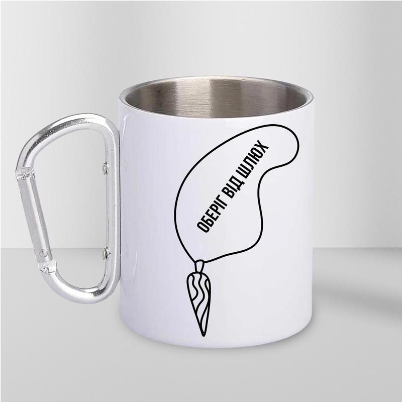 Чашка металева з принтом "оберіг від шлюх" 300 мл з карабіном, біла