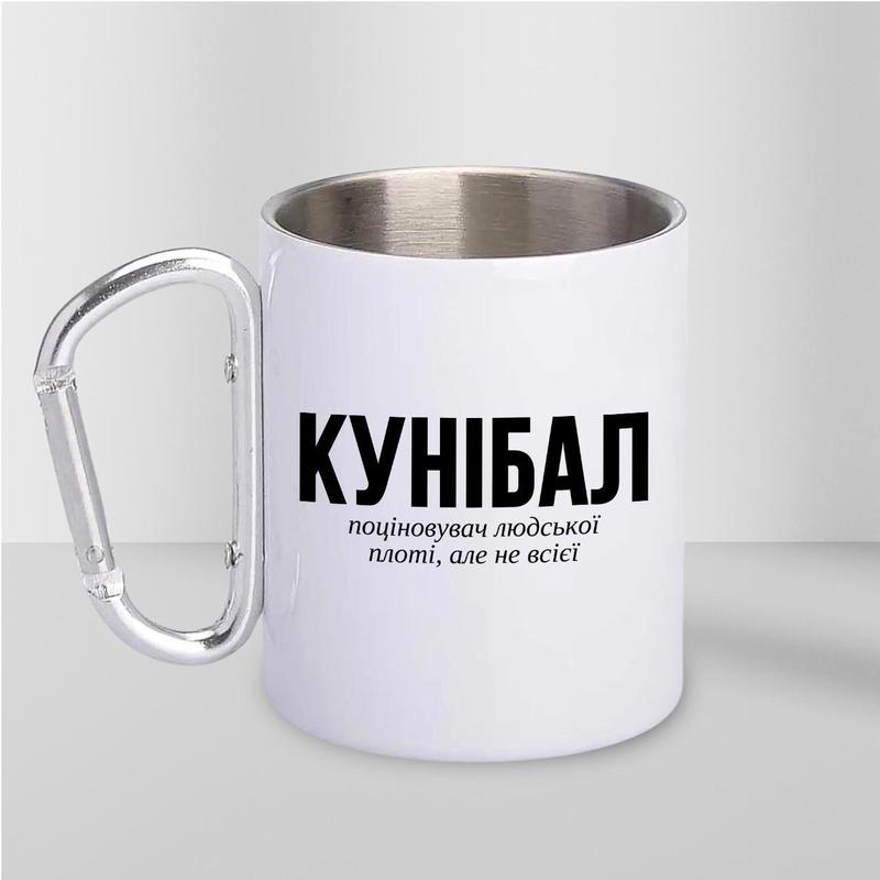 Чашка металева з принтом "кунібал" 300 мл з карабіном, біла