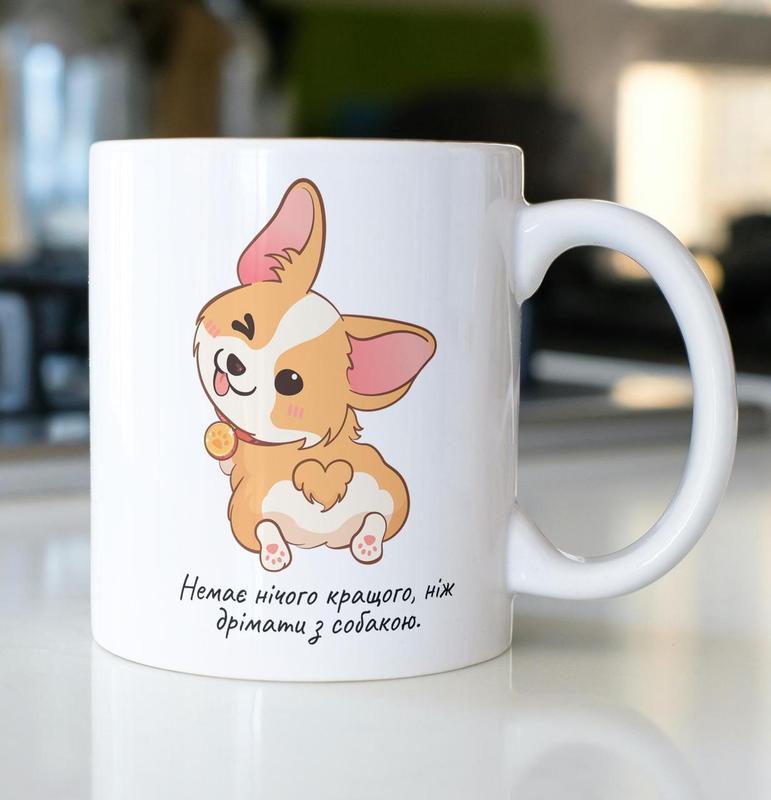 Кружка з принтом "немає нічого кращого, ніж дрімати з собакою" 330 мл біла