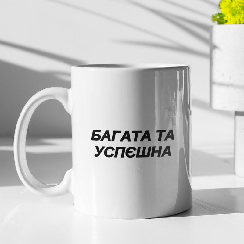 Чашка керамічна з принтом "богата та успєшна" 330 мл, біла