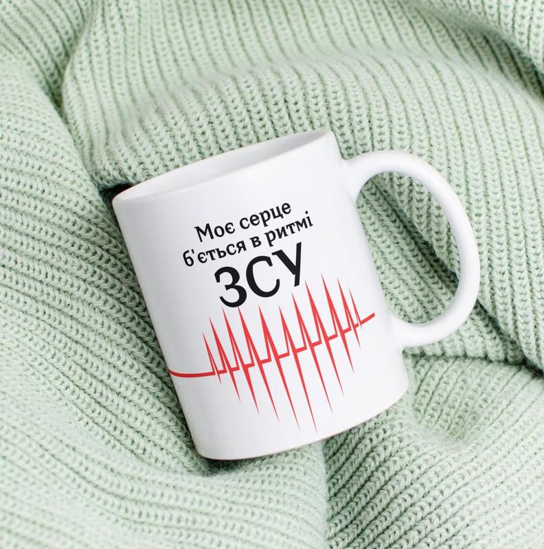 Кружка з патріотичним принтом "моє серце б'ється в ритмі зсу" 330 мл біла