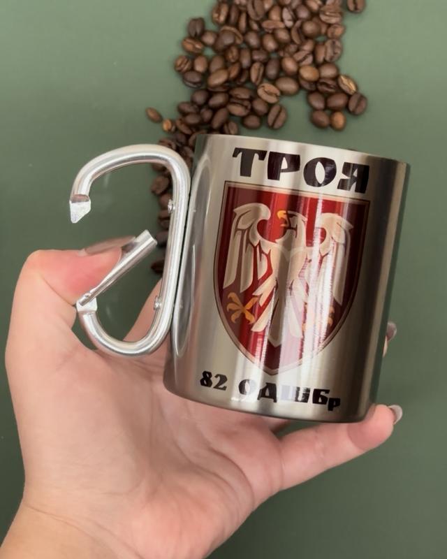 Чашка металева з карабіном, подарунок для військового, 82 ошбр, кружка зсу
