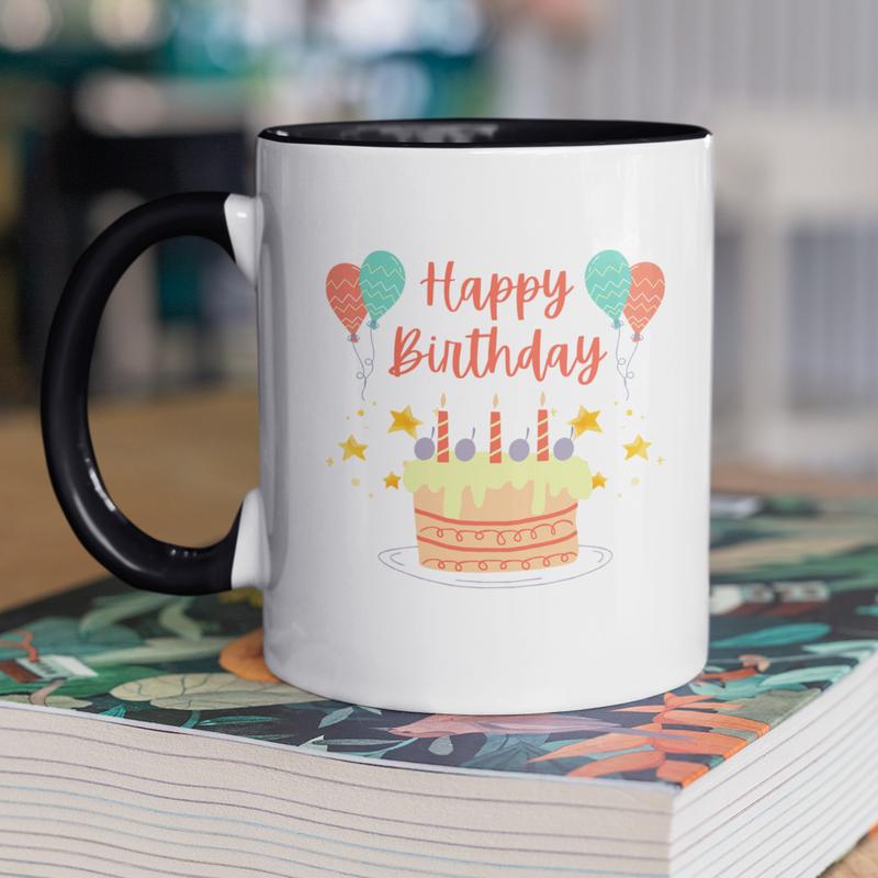 Чашка керамическая с принтом "happy birthday" 330 мл, белая с черной ручкой