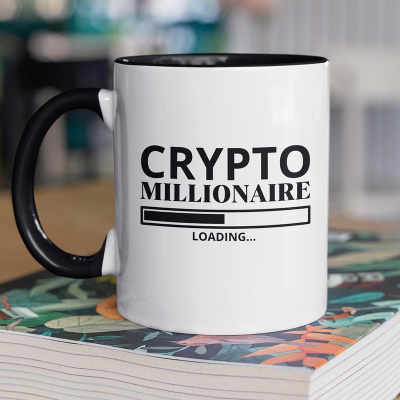 Чашка керамическая с принтом "crypto millionaire" 330 мл, белая с черной ручкой