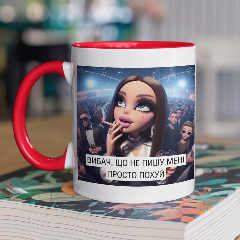 Чашка керамическая с принтом "не пишущая" 330 мл белая с красной ручкой