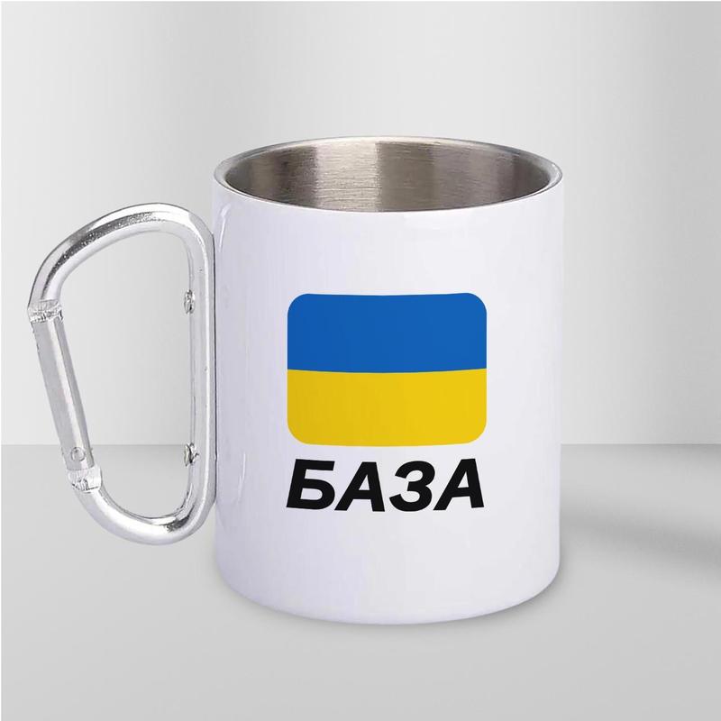 Чашка металлическая с принтом "база" 300 мл с карабином, белая