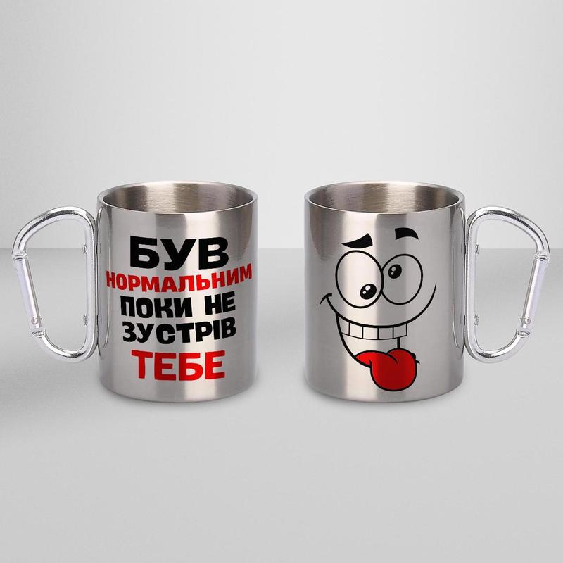 Кружка металлическая с карабином "бувь нормальным пока не навстречу тебе" 300 мл серебрист...