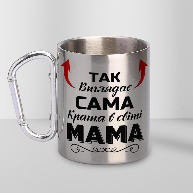 Кружка металлическая с карабином "так выглядит сама лучше мама" 300 мл серебристая