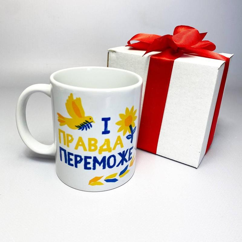 Кружка с патриотическим принтом "и правда победит" 330 мл в подарочной коробке с бантом