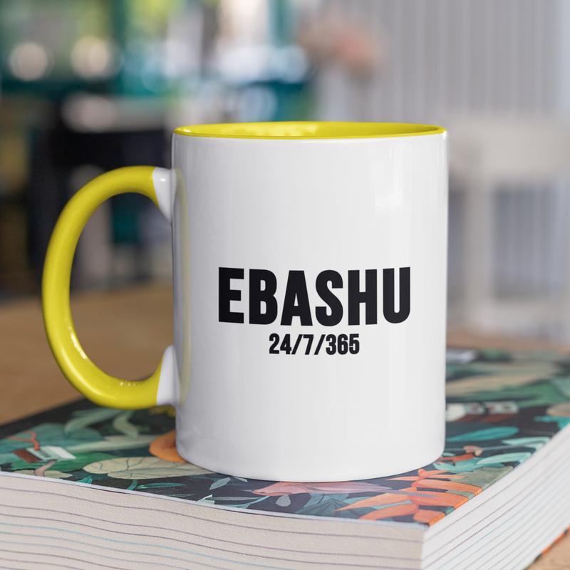 Чашка керамическая с принтом "ebashu" 330 мл, белая с желтой ручкой