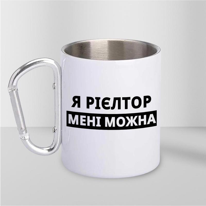 Чашка металлическая с принтом "я реилтор мне можно" 300 мл с карабином, белая