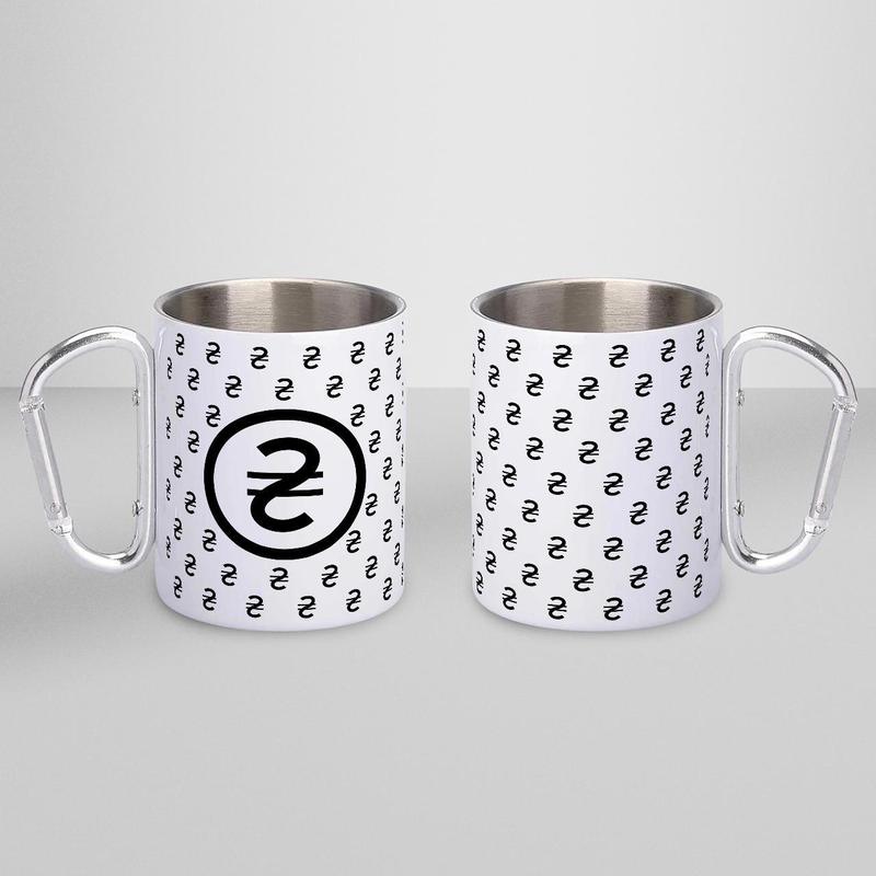 Чашка металлическая с принтом "горьня" 300 мл с карабином, белая