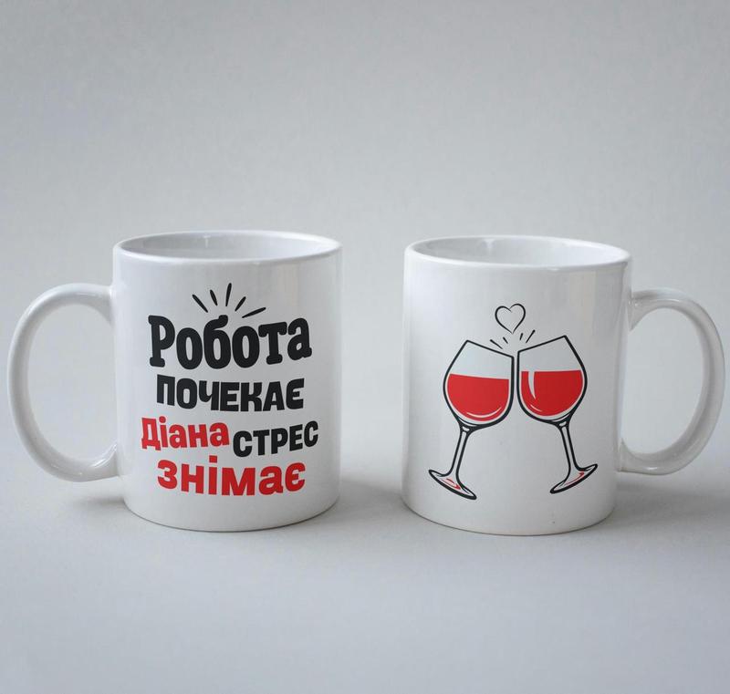 Кружка с принтом "диана стресс снимает" 330 мл белая