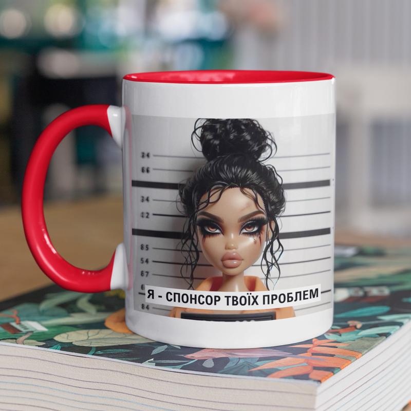 Чашка керамическая с принтом "я спонсор твоих проблем" 330 мл, белая с красной ручкой