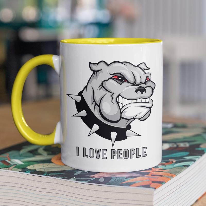 Чашка керамическая с принтом "i love people" 330 мл, белая с желтой ручкой