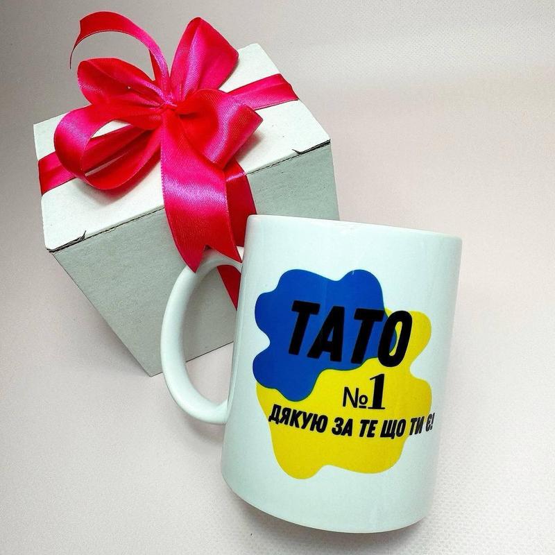 Кружка керамическая с принтом "тато no1 благодарю за то, что ты есть" 330 мл в подарочной...