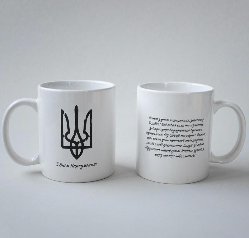 Кружка з принтом "з днем народження тризуб" 330 мл біла