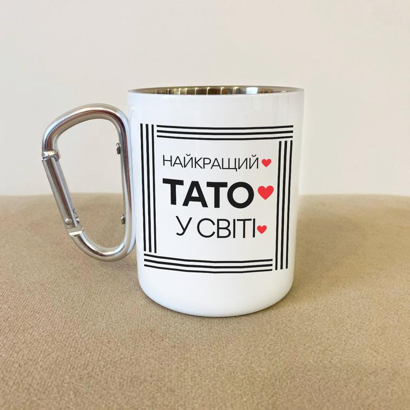 Кружка металлическая с карабином "лучший папа в мире" 300 мл белая