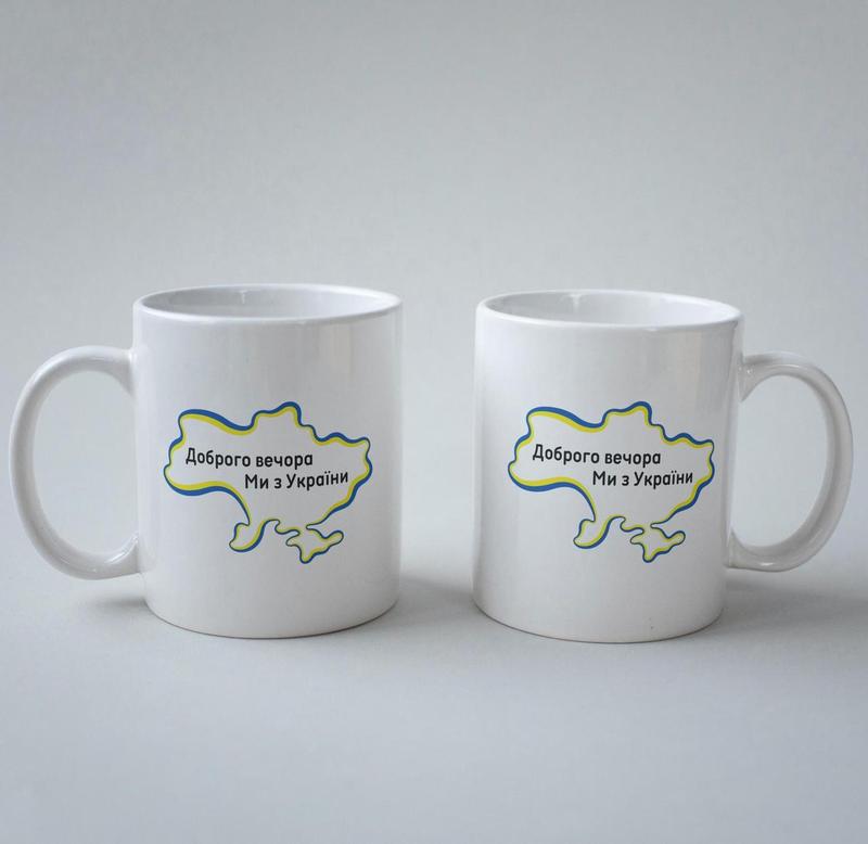 Кружка патриотическая с принтом "доброго вечера мы из украины" 330 мл белая