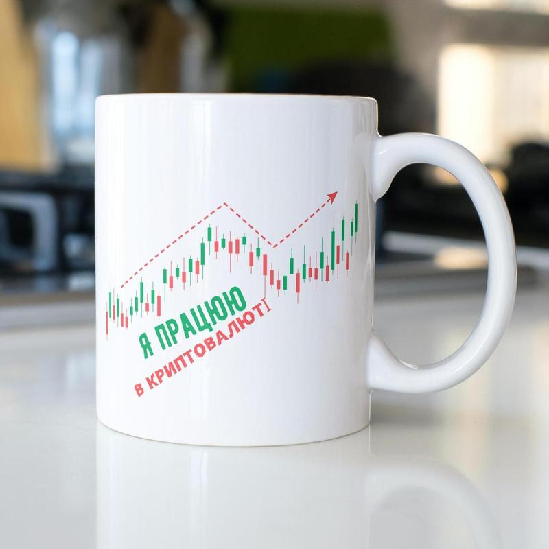 Кружка с принтом "я работаю в криптовалюте" 330 мл белая