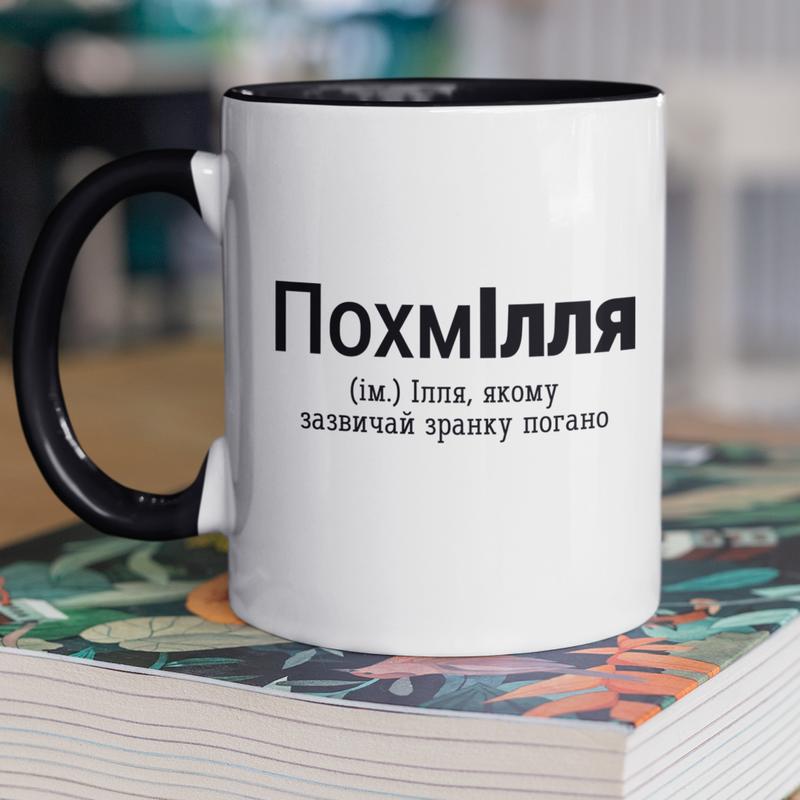Чашка керамическая с принтом "похмилля" 330 мл, белая с черной ручкой