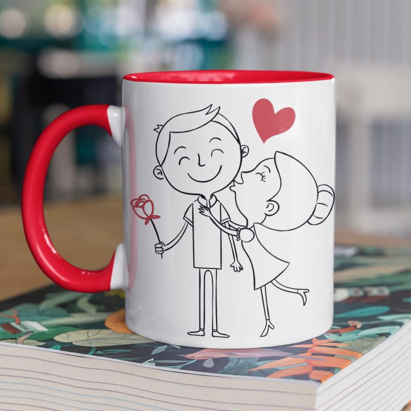 Чашка керамическая с принтом "кохание" 330 мл, белая с красной ручкой