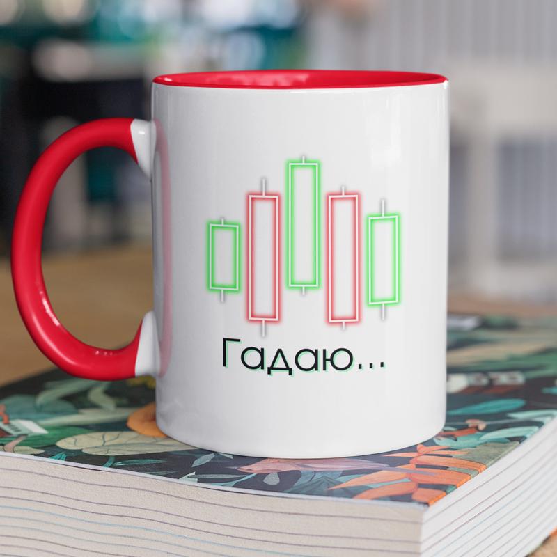 Чашка керамічна з принтом "гадаю крипта" 330 мл, біла з червоною ручкою