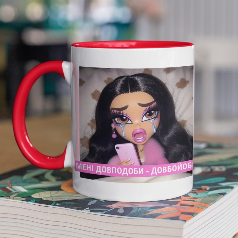 Чашка керамическая с принтом "мою долбуки дол*ойобы" 330 мл, белая с красной ручкой