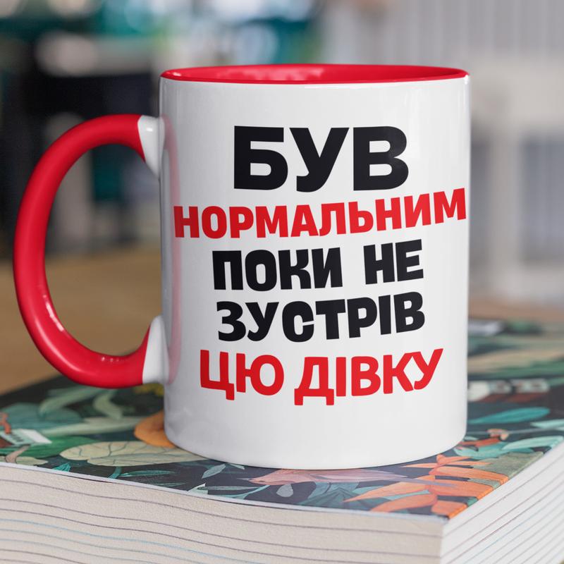 Чашка керамическая с принтом "був нормальным пока не навстречу эту девку" 330 мл, белая с...