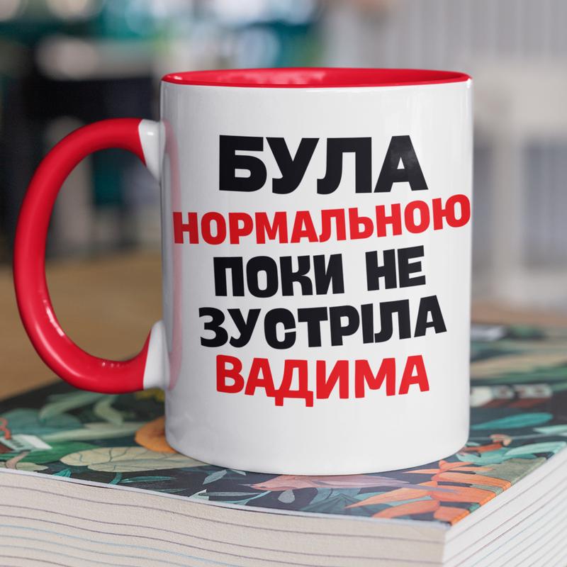 Чашка керамическая с принтом "була нормальной пока не навстречу вадима" 330 мл, белая с кр...