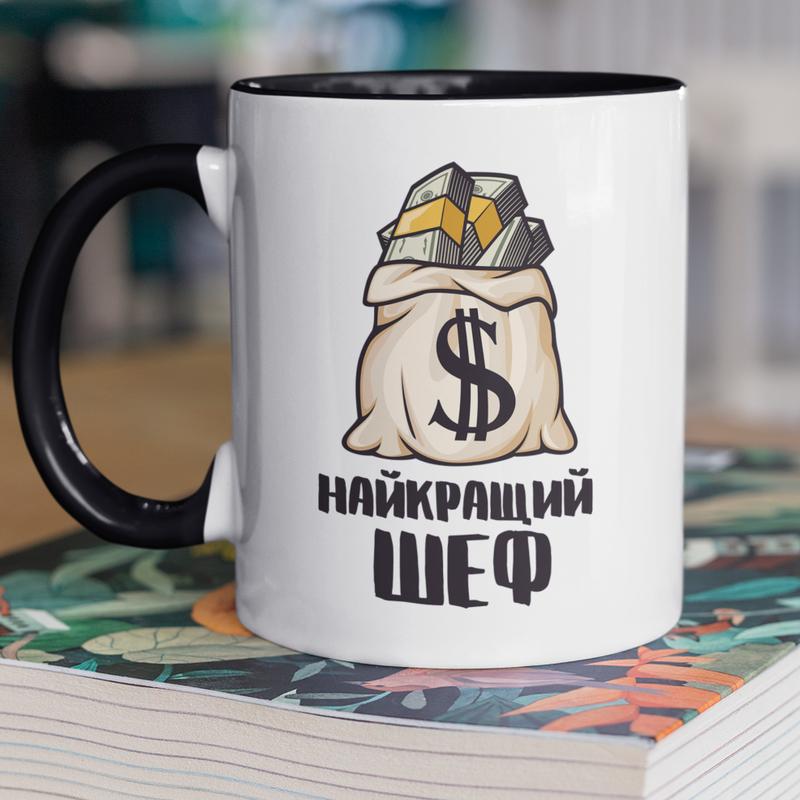 Чашка керамічна з принтом "найкращий шеф" 330 мл, біла з чорною ручкою