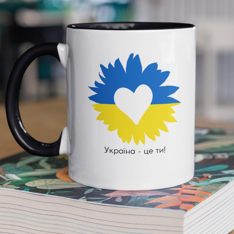 Чашка керамическая с принтом "украина это ты" 330 мл, белая с черной ручкой
