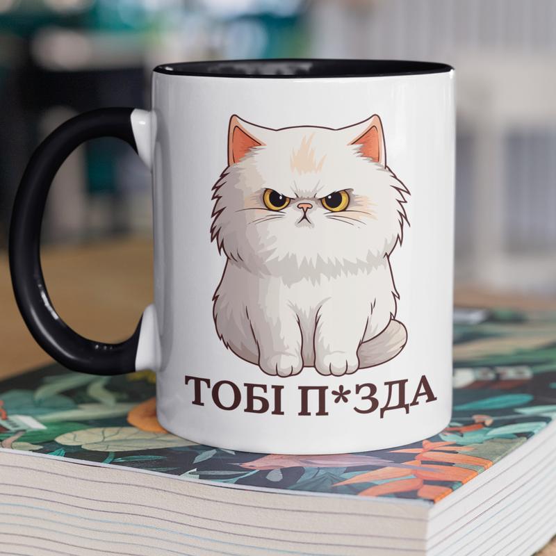 Чашка керамическая с принтом "тоби п_зда" 330 мл, белая с черной ручкой