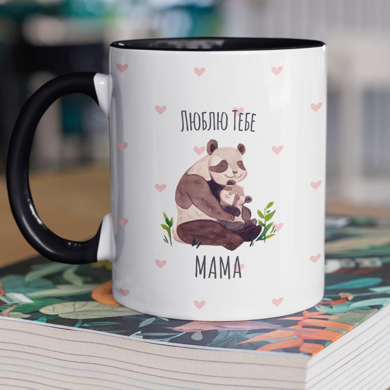 Чашка керамическая с принтом "люблю тебя мама" 330 мл, белая с черной ручкой