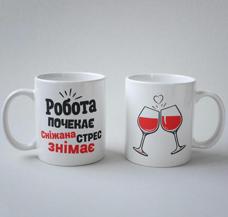 Кружка с принтом "снежана стресс снимает" 330 мл белая