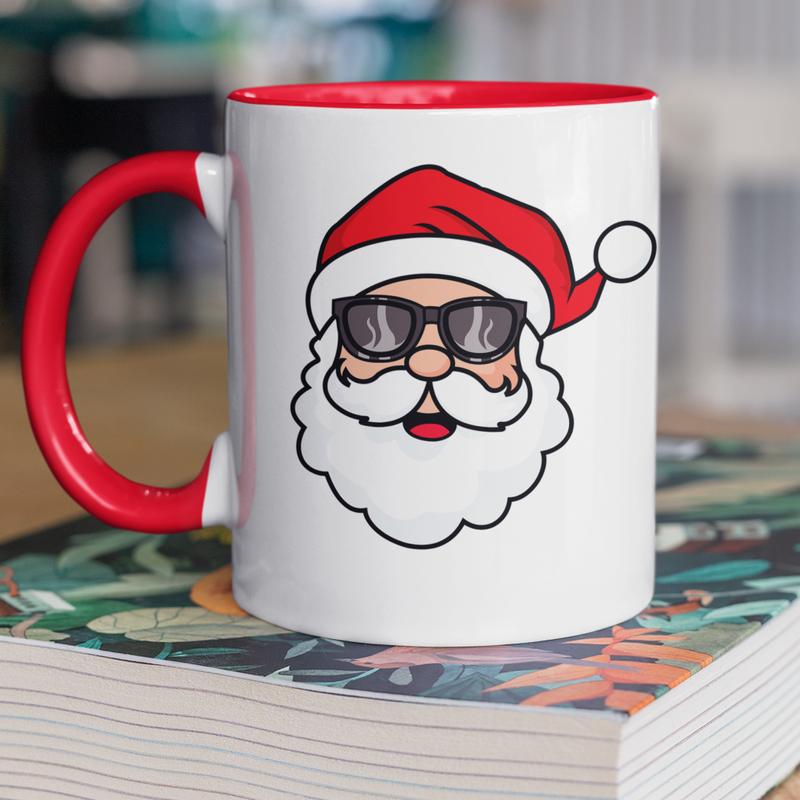 Чашка керамическая с принтом "дед мороз" 330 мл, белая с красной ручкой