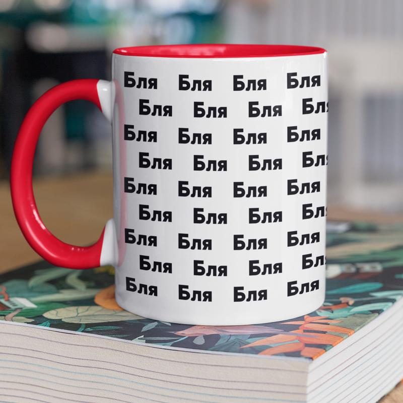 Чашка керамическая с принтом "бля" 330 мл, белая с красной ручкой
