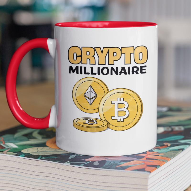 Чашка керамическая с принтом "crypto millionaire" 330 мл, белая с красной ручкой