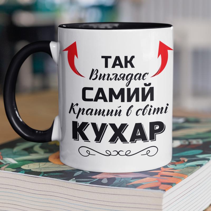 Чашка керамічна з принтом "так виглядає самий кращий в світі кухар" 330 мл, біла з чорною...