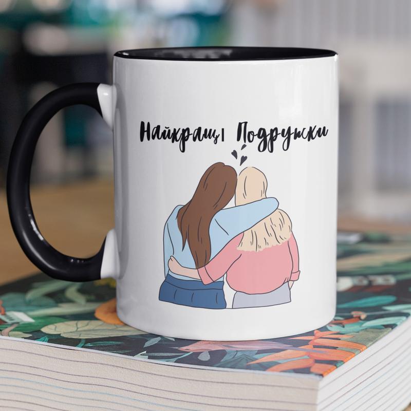 Чашка керамічна з принтом "найкращі подружки" 330 мл, біла з чорною ручкою