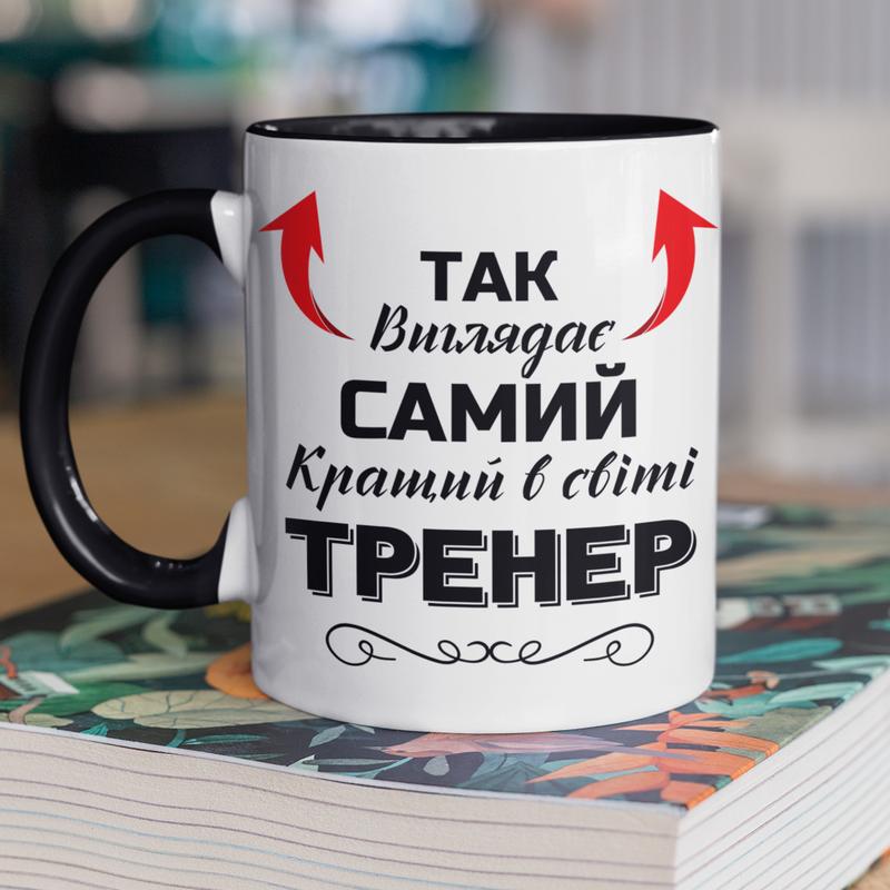 Чашка керамічна з принтом "так виглядає самий кращий в світі тренер" 330 мл, біла з чорною...