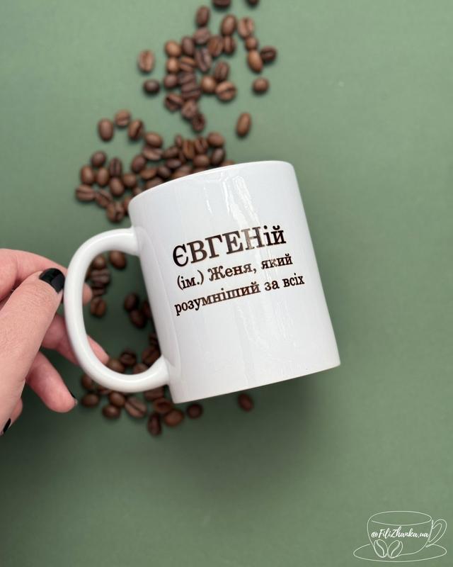 Чашка з іменем євгеній, подарунок для євгенія, жені, кружка з прикольними надписами