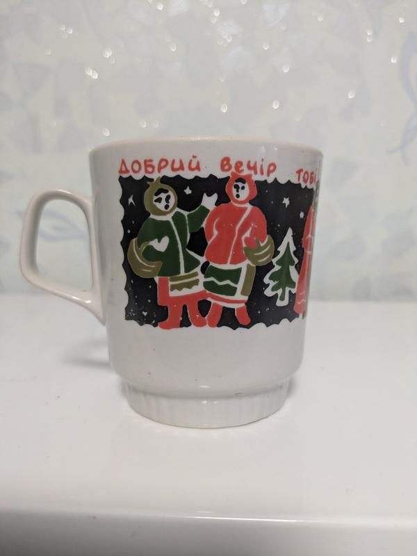 Чашка фарфоровая Рождество редкая Добрый вечер, тебе, Пан хозяину! Полонне Объем 350 мл В идеальном состоянии Высота 9,2 см, диаметр верха 8.5 см