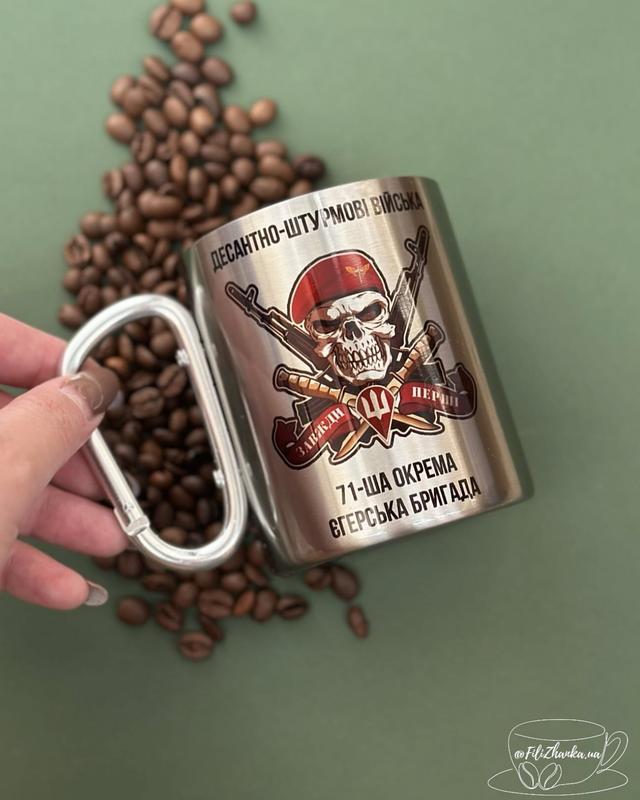 Чашка металева з карабіном 71 оєбр дшв , подарунок військовому, кружка для зсу
