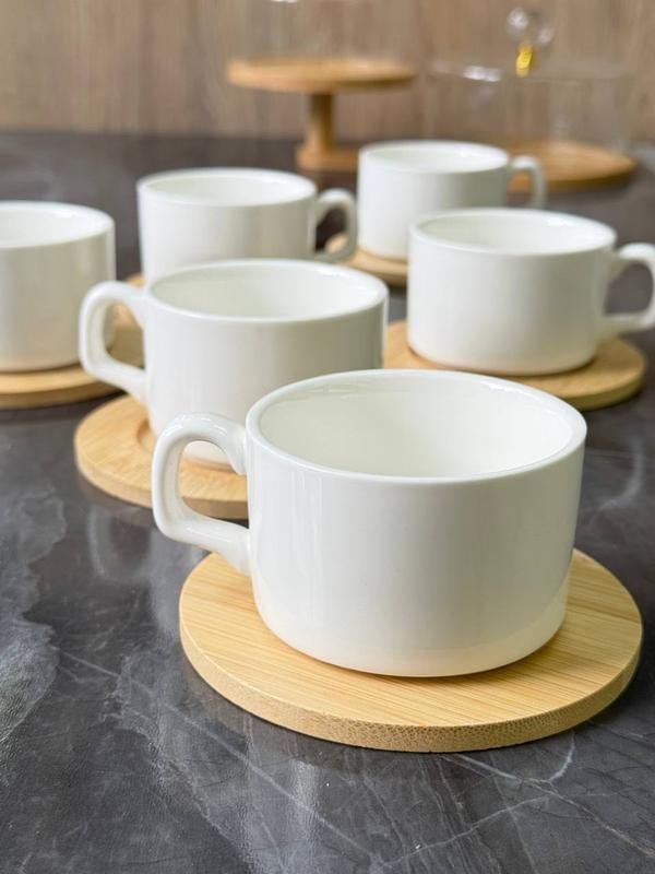 Этот набор чашек с бамбуковыми блюдцами сочетает в себе современный дизайн и заботу о природе, даря стиль и экологичность на вашем столе. В наборе идет 6 чашек – удобно, когда приходят друзья. Все одинаковые, хороши, с блюдцами и не надо ничего дополнительно искать. Поставив на стол – и уже красиво. Набор удобно хранить – чашки ставятся друг в друга, места мало занимают. Этот набор - идеальный подарок для тех, кто ценит стиль и заботу об окружающей среде. Он создаст атмосферу экологического комфорта и сделает каждый момент особенным. ☕ Высококачественная керамика и экологичные бамбуковые блюдцы ☕ Емкость - 150 мл, идеально на нормальную порцию кофе ☕ Удобные и прочные Высота чашки 5,5 см, диаметр 7,5 см. Подставка: диаметр 11,5 см.