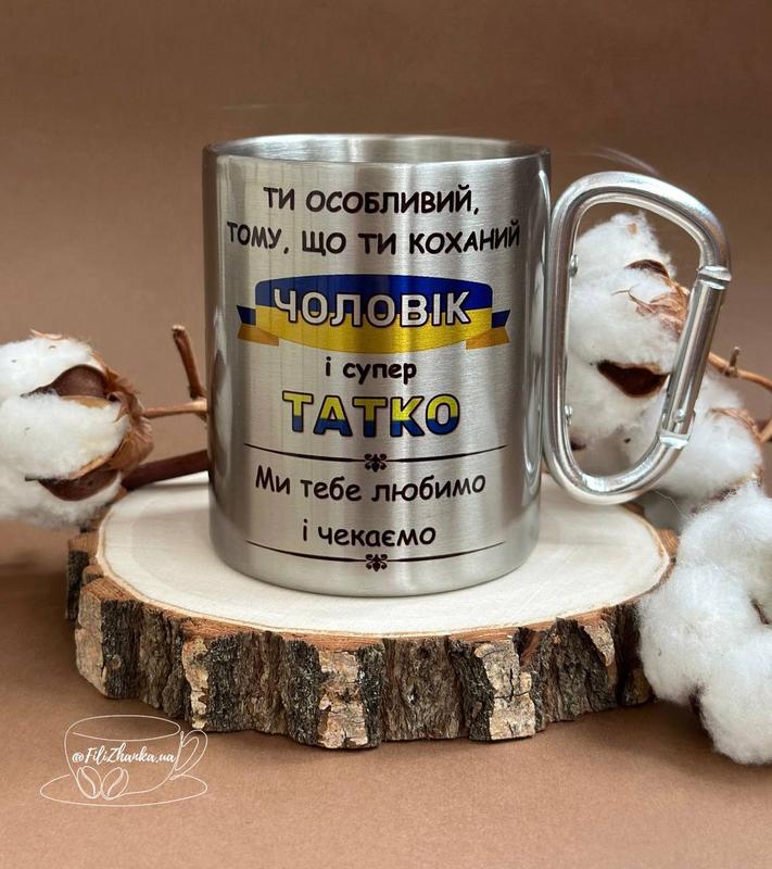 Металева чашка з ручкою-карабіном⛓️Виконана з нержавіючої сталі, має подвійні стальні стінки, за рахунок чого довше зберігає тепло🔥 💸Ціна: 380 грн (стандартне пакування) 💸Ціна: 405 грн (подарункове пакування🎁) Дизайн зробимо будь-який (емблема бригади, позивний, надпис, фото - вартість буде така сама) Відправка Новою Поштою/Укрпоштою Є оплата на рахунок ФОП, наложка по передоплаті або Безпечна Оплата на Шафа.Юа