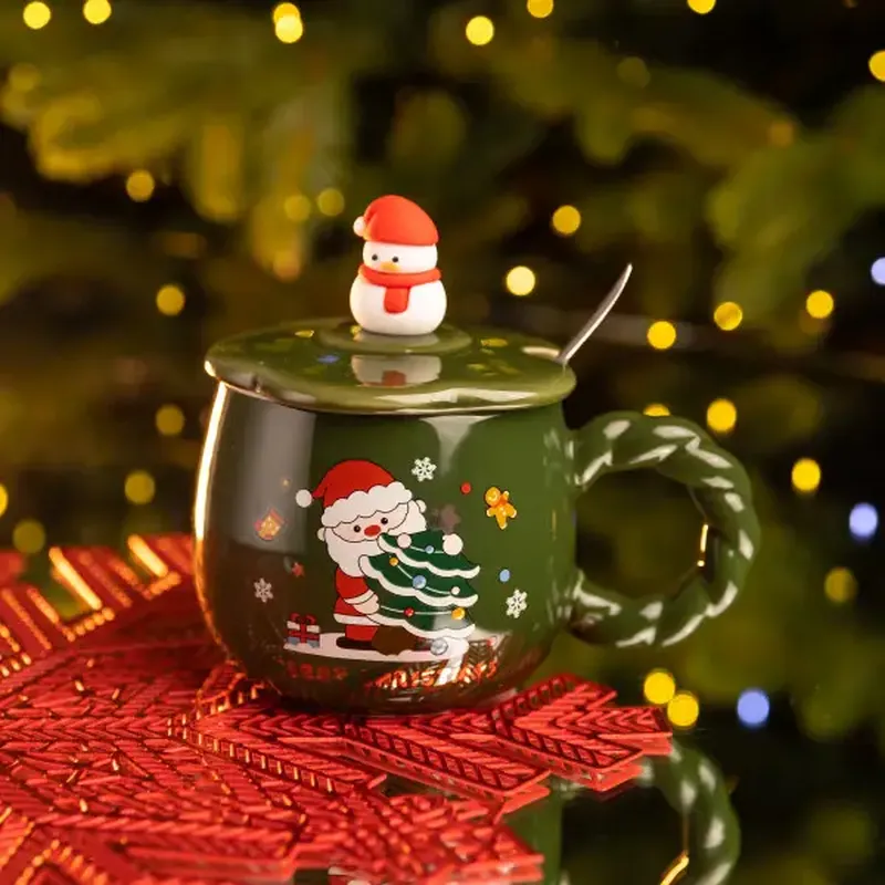 Яркая и вместительная фарфоровая чашка объемом 400 мл, созданная для максимального новогоднего настроения. Благодаря крышке напиток дольше сохранит тепло, а ложечка сделает чаепитие еще более приятным. Идеальный аксессуар для зимних вечеров, а также запоминающийся подарок к праздникам. Особенности: Материал: Кружка выполнена из качественного фарфора. Крышка: В комплекте фарфоровая крышка, декорированная милой фигуркой из силикона. Уход: Рекомендуется ручная мойка для сохранения декора. Характеристики: Материал: фарфор, нержавеющая сталь Объем: 400 мл Диаметр (верх/низ): 9/7,5 см Высота: 12 см Вес: 500 г